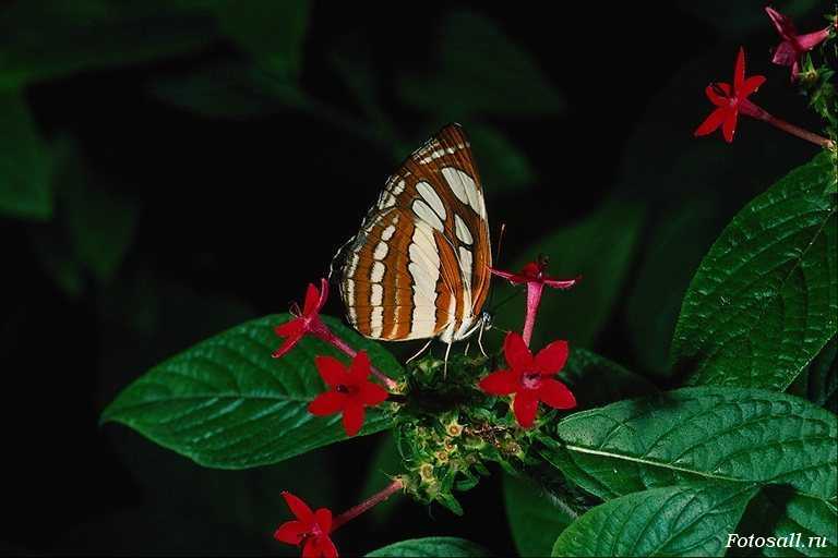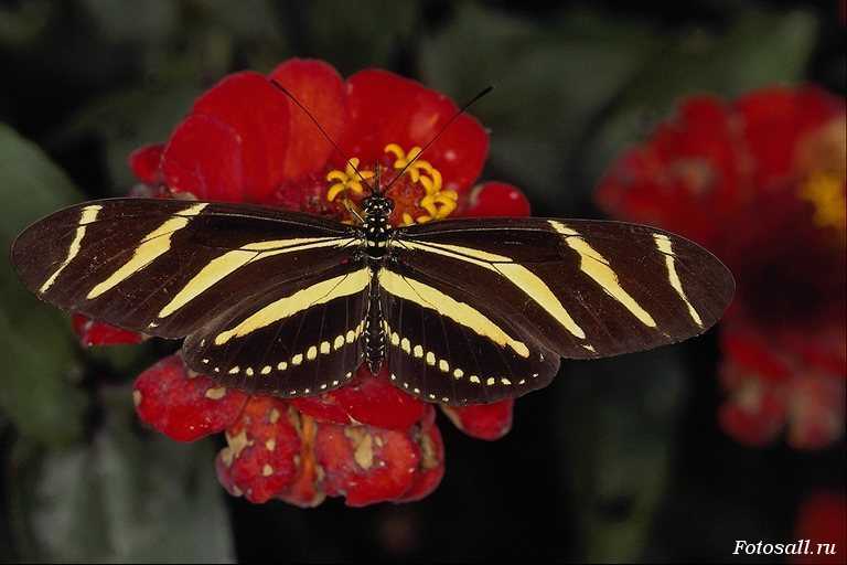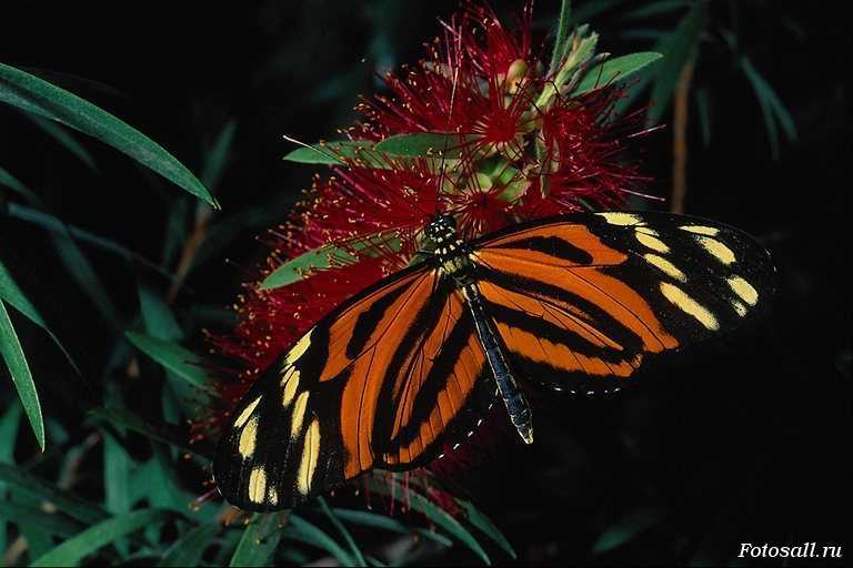 Бабочка на красном цветке.