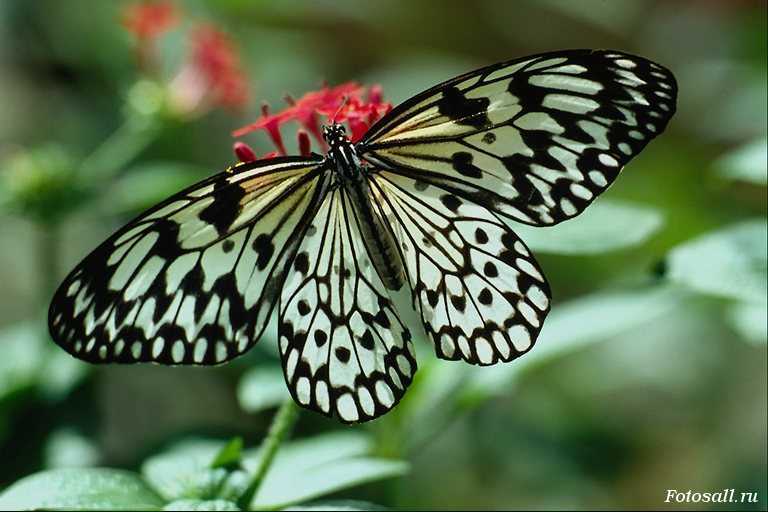 Белая бабочка с чёрными узорами.