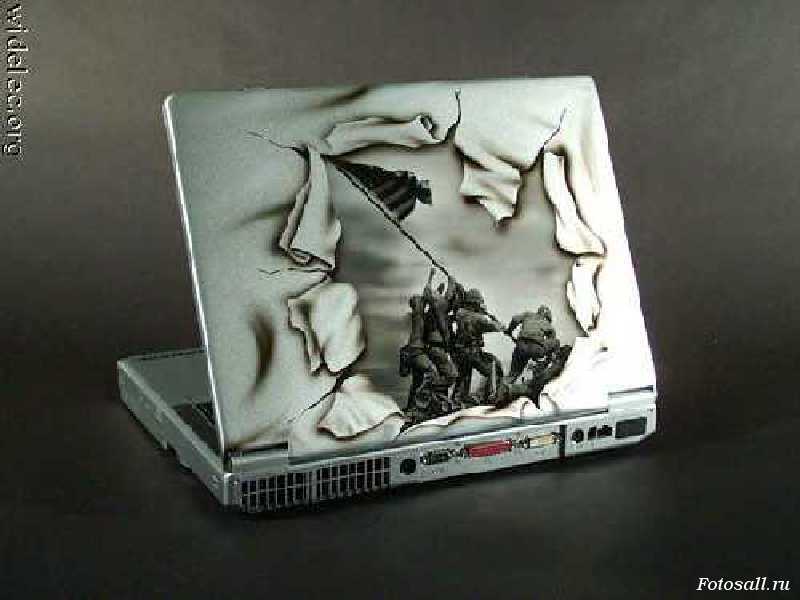 Ноутбук с красивым дизайном на крышке.